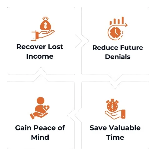 Partnering With Us Means You Can Recover Lost Income, Reduce Future Denials, and Gain Valuable Peace of Mind. See the Tangible Benefits of Our Expert Appeal Services.